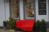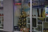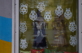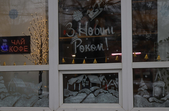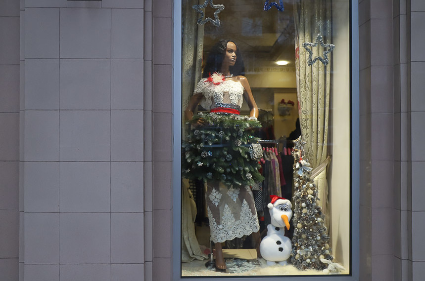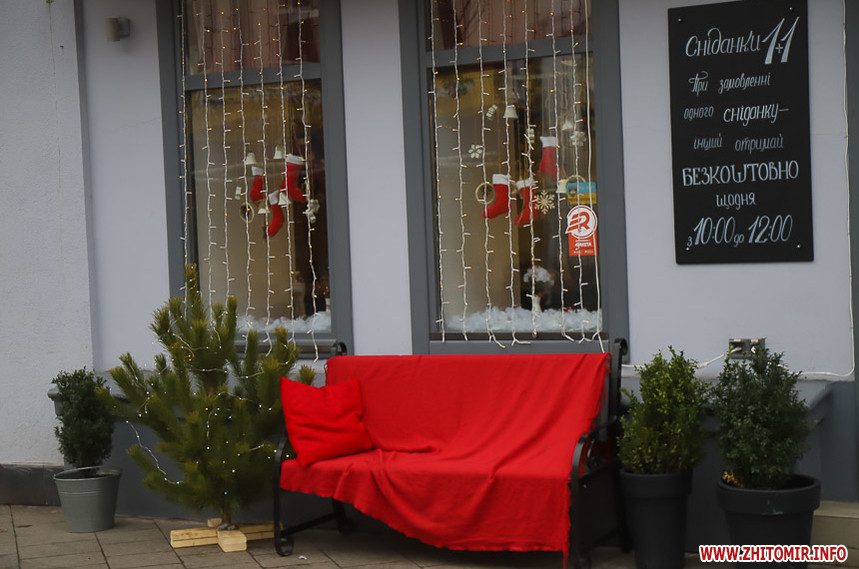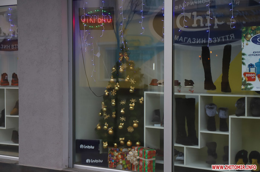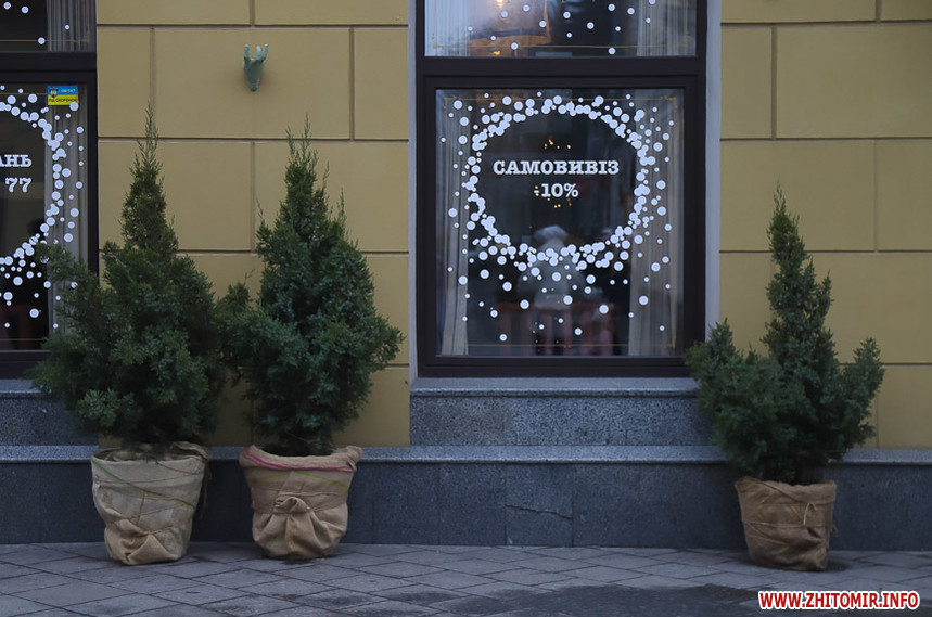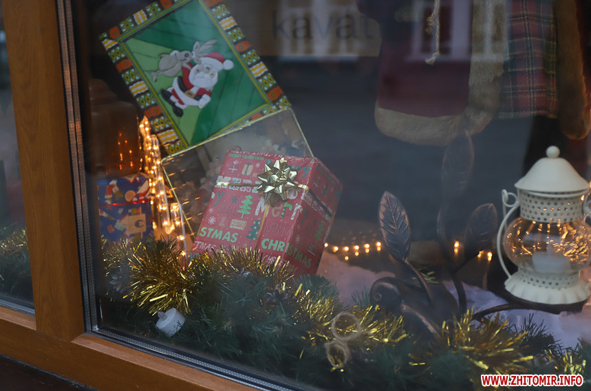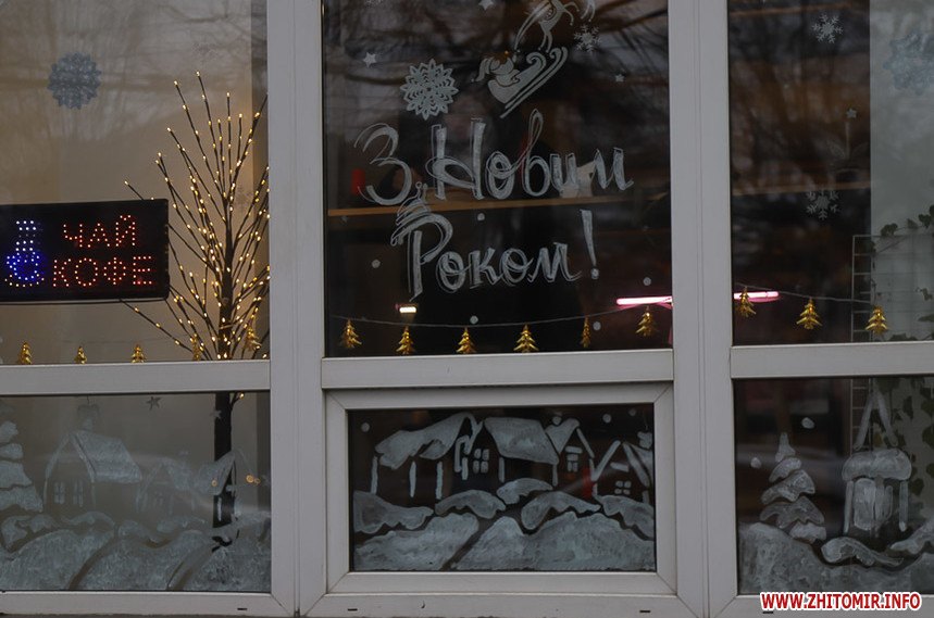 Кав'ярні та магазини чепуряться ще з осені: на початку листопада у вітринах почали з'являтися гірлянди, декоративні сніжинки та ялинки. Деяким магазином стало замало лише сніжинок та ялинок, і вони створюють цілі новорічні образи для своїх манекенів. Кав’ярні виставляють смачну рекламу у вигляді святкових тортиків-будиночків.