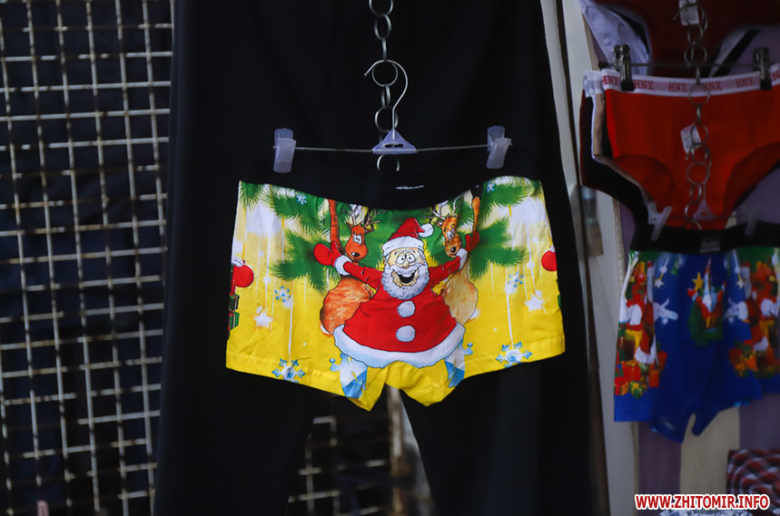 Продаж живих ялинок ще не стартував, проте на базарі вже активно продають штучні дерева, гірлянди та прикраси до них. На ринку можна відшукати і новорічні прикраси «для тіла» – рукавички з тематичними принтами, шкарпетки і навіть білизну.