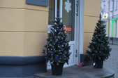 Окрім «комунальних» ялинок, що свято наближається, нагадують і деревця, виставлені адміністрацією ресторанів та магазинів.