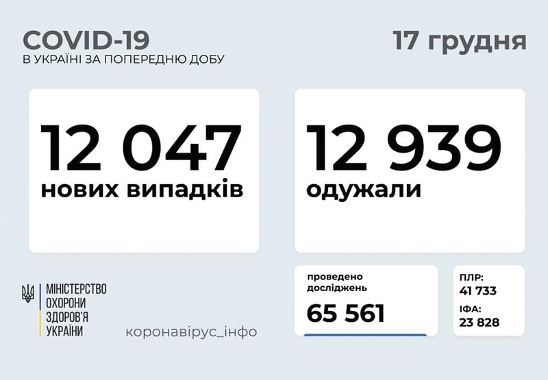 За даними Міністра охорони здоров’я Максима Степанова, станом на 17 грудня 2020 року в Україні зафіксовано 12 047 нових випадків коронавірусної хвороби COVID-19. Зокрема, захворіли 594 дитини та 535 медпрацівників.