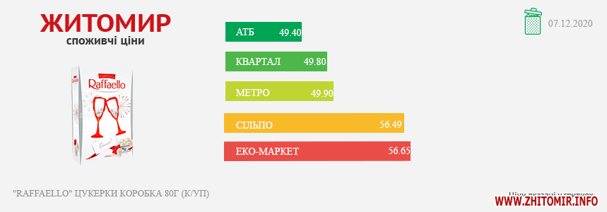 МОНІТОРИНГ ЗДІЙСНЕНО МЕТОДОМ КОНТРОЛЬНОЇ ЗАКУПІВЛІ, У МІСЦЯХ ПРОДАЖУ: AТБ, пр. Миру, 15А, Еко-маркет, вул. Мала Бердичівська, 2/7, Квартал, вул. Вітрука, 13, Сільпо, пл. Житній ринок, 1, Метро, вул. Ватутіна 55-в