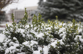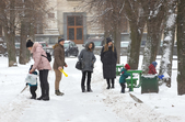 А от комунальникам не так весело – з самісінького ранку вони розчищають місто від снігу. Навіть в обідній час у сквері біля монумента Слави працює снігоприбиральна техніка.