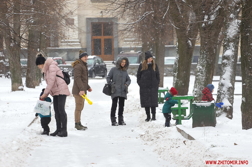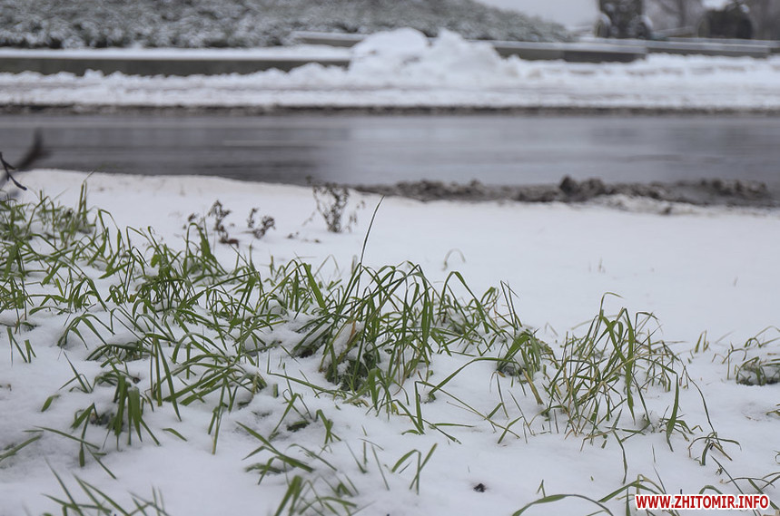 Очікуючи таких примх погоди, багато хто з житомирян намагається викроїти час та помилуватися засніженим містом, зимові «картинки» містяни фіксують на фото та публікують у соцмережах. Адже, хоч снігу випало небагато, парки та сквери мають казковий вигляд. А з-під тонкої снігової ковдри де-не-де видніється яскраво-зелена трава та навіть останні осінні квіти, розбавляючи однобарв'я.