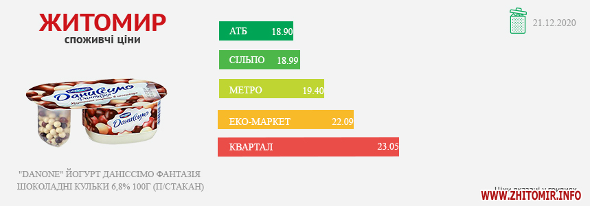 МОНІТОРИНГ ЗДІЙСНЕНО МЕТОДОМ КОНТРОЛЬНОЇ ЗАКУПІВЛІ, У МІСЦЯХ ПРОДАЖУ: AТБ, пр. Миру, 15А, Еко-маркет, вул. Мала Бердичівська, 2/7, Квартал, вул. Вітрука, 13, Сільпо, пл. Житній ринок, 1, Метро, вул. Ватутіна 55-в