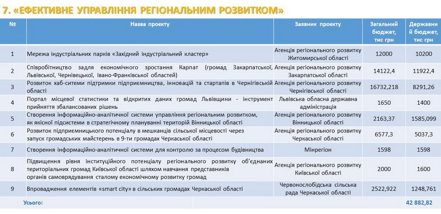 Зазначимо, що серед переможців є лише один проєкт з Житомирської області, який стосується мережі індустріальних парків «Західний індустріальний кластер», заявник – Агенція регіонального розвитку Житомирської області, загальний бюджет проєкту 12 млн грн, де 10,2 млн грн – з державного бюджету.