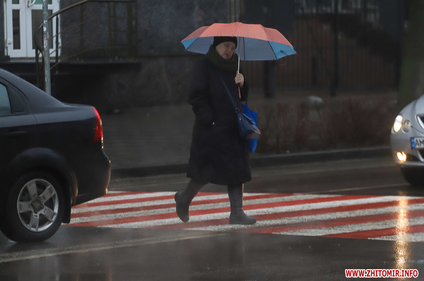 Пообіді туман змінився на мряку і дощ. Передбачливі житомиряни мали з собою парасольки, проте більшість містян рятувалися від дощу капюшонами. За прогнозами синоптиків, дощова погода триватиме до ранку 26 січня і зміниться на мокрий сніг.