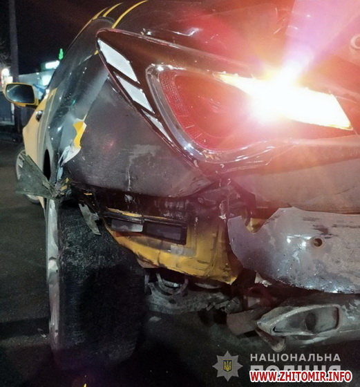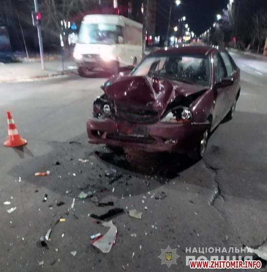 «Попередньо, на перехресті зіштовхнулись автомобіль Hyundai під керуванням 41-річного житомирянина, який розпочав маневр повороту, та Geely, за кермом якого перебував 54-річний місцевий житель та рухався позаду у попутному напрямку. У результаті ДТП автомобілі зазнали механічних пошкоджень, водію Hyundai було надано медичну допомогу без ушпиталення», – йдеться у повідомленні.