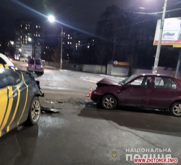 На перехресті вулиць Вітрука та Шевченка у Житомирі 26 січня зіштовхнулись Hyundai та Geely.