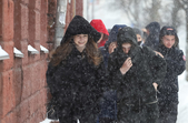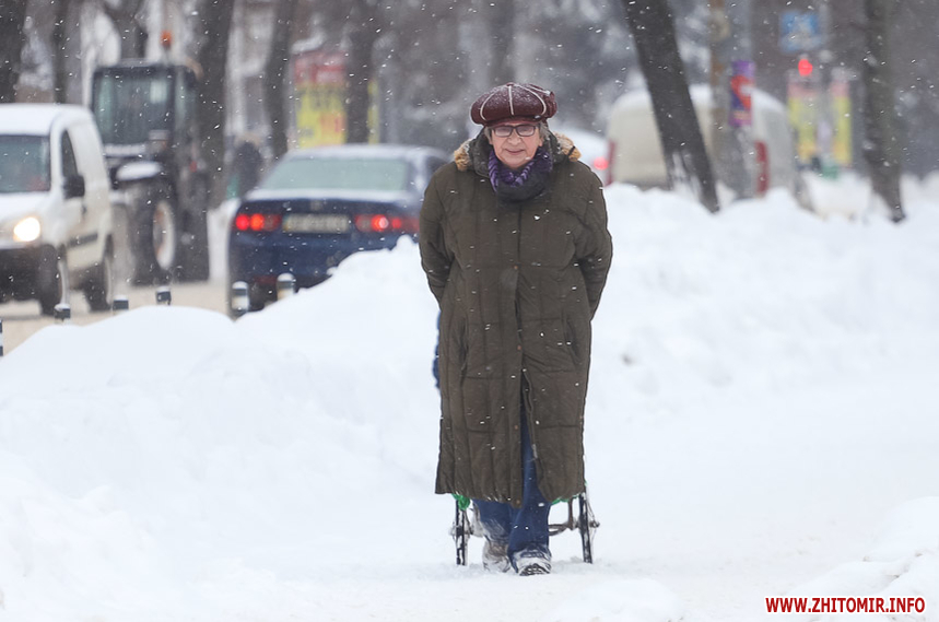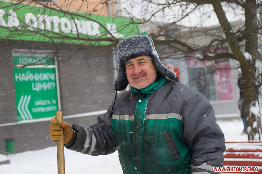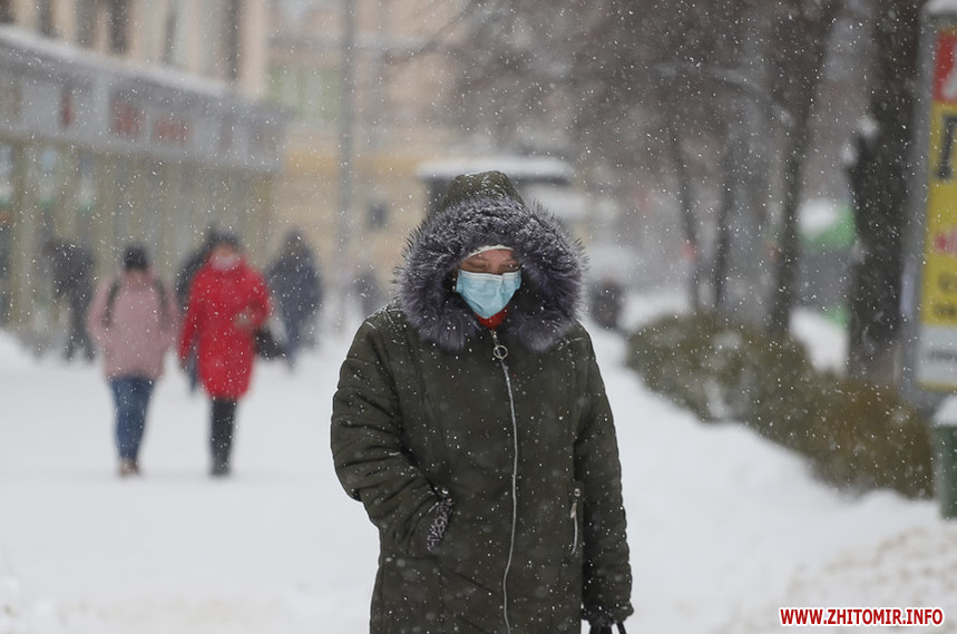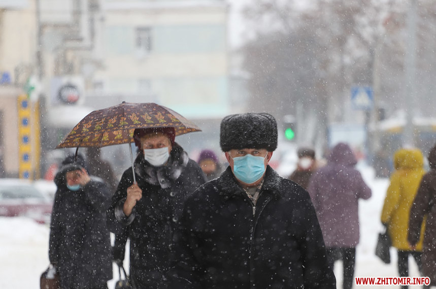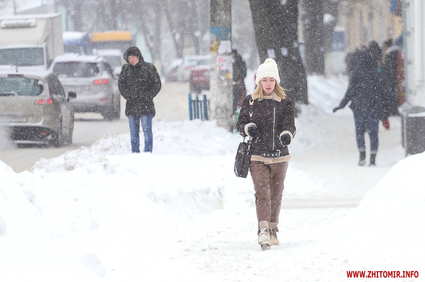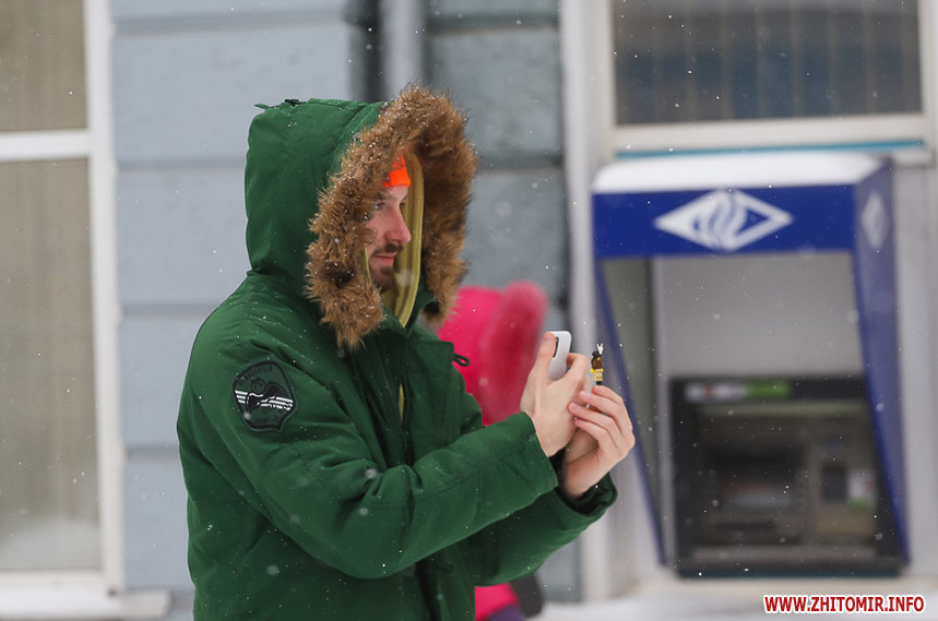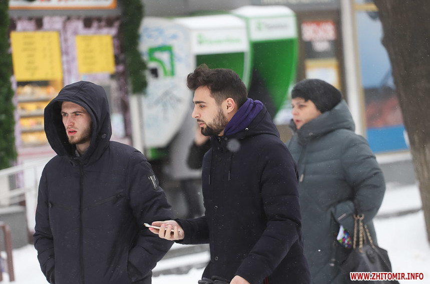 Хтось з житомирян не боїться снігу та морозу і гуляє без шапки, інші ж - навпаки, кутаються у шарфи, маски та капюшони. У місті можна зустріти як тих, хто ховається від снігопаду під парасольку, так і тих, хто насолоджується снігопадом.