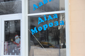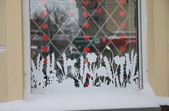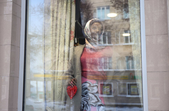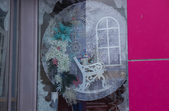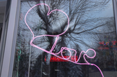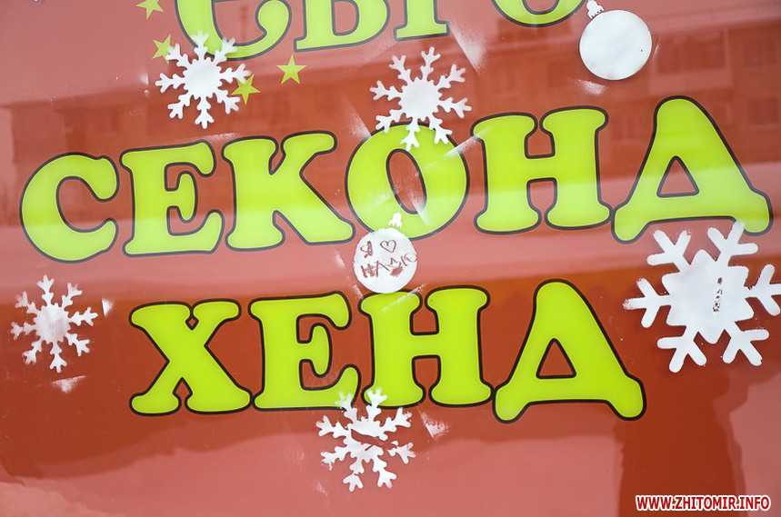 Хтось вирішив взяти справу романтичного оформлення у свої руки і написав зізнання на залишках сніжинок у вікні секонд хенду.