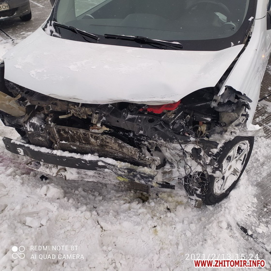 «13 лютого надійшов виклик про дорожньо-транспортну пригоду на 132 кілометрі автодороги Київ – Чоп. Прибувши на місце події, патрульні встановили, що водій, 1995 року народження, керуючи автомобілем Renault Kangoo, не врахував дорожню обстановку, не впорався з керуванням на слизькій ділянці дороги, виїхав на зустрічну смугу руху та здійснив зіткнення з Renault Clio, який рухався в зустрічному напрямку. У результаті транспортні засоби отримали механічні пошкодження», – розповіла пресофіцерка патрульної поліції Житомирської області Тетяна Носадчук.