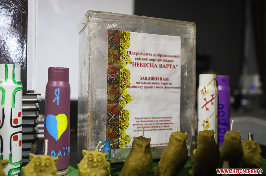 У Житомирі 18 лютого на благодійному вечорі у «Місцевому навколокультурному просторі» збирали кошти, щоб підтримати добровольчий загін аеророзвідки «Небесна варта». Цей загін постійно працює на території фронту і допомагає різним підрозділам ЗСУ, проводячи аеророзвідку.