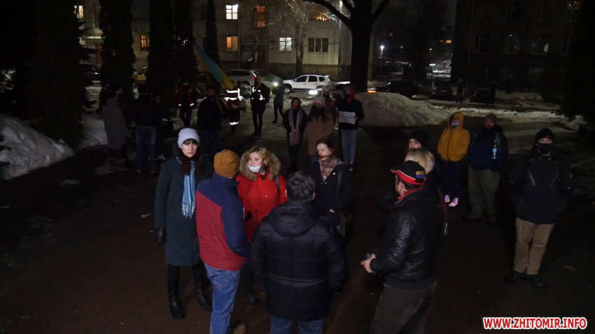 Нагадаємо, близько 18.00 23 лютого житомиряни зібралися на майдані Корольова на акцію «Волю Стерненку», аби висловити підтримку громадському активісту, якому в цей день Приморський суд в Одесі виніс вирок – 7 років ув’язнення. Ще до початку акції поліція затримала двох активістів, які нібито намагались запалити шини.