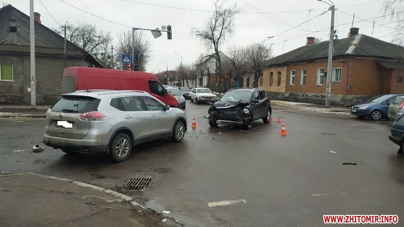 У суботу, 27 лютого, на перехресті вулиць Івана Мазепи і Гоголівської в Житомирі не розминулись два легковики.