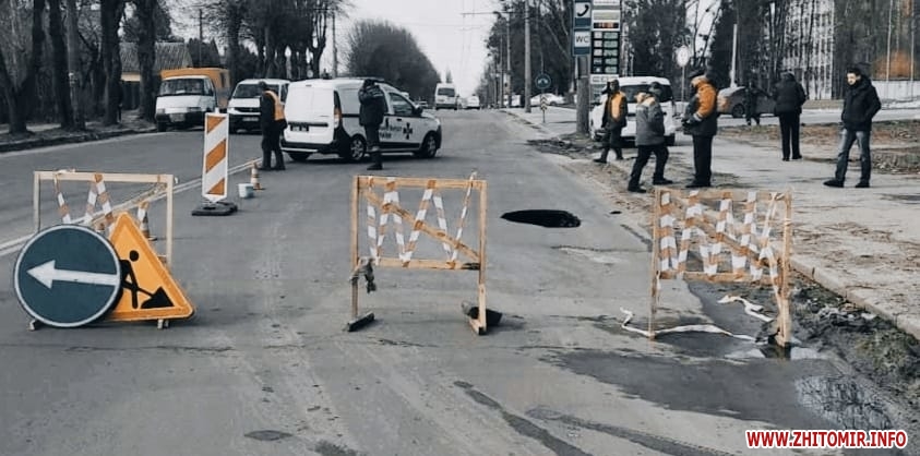 «У Житомирі на вулиці Cхідній, 101 стався порив каналізаційного колектору, внаслідок чого утворилося провалля на проїжджій частині. Від завтра бригада водоканалу розпочне ліквідовувати наслідки аварії. Роботи триватимуть щонайменше тиждень», – йдеться у повідомленні.
