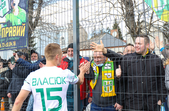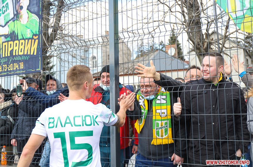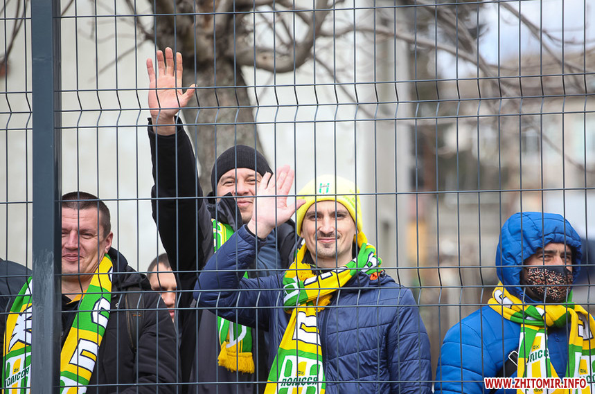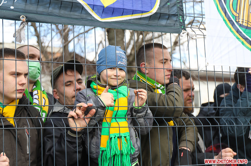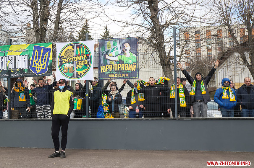 Попри червону зону, закритий стадіон та зовсім не зручний час (початок матчу о 14:00), житомирські вболівальники підтримували у домашньому поєдинку своїх гравців, стоячи за межами стадіону з боку вулиці Фещенка-Чопівського.