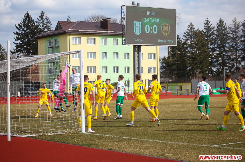 5 квітня ФК «Полісся» на центральному стадіоні у Житомирі в рамках 20-го туру Першої ліги України приймав харківський «Металіст 1925». Через карантинні обмеження трибуни порожні, на стадіоні – лише технічний персонал, журналісти, фотографи та оператори.