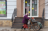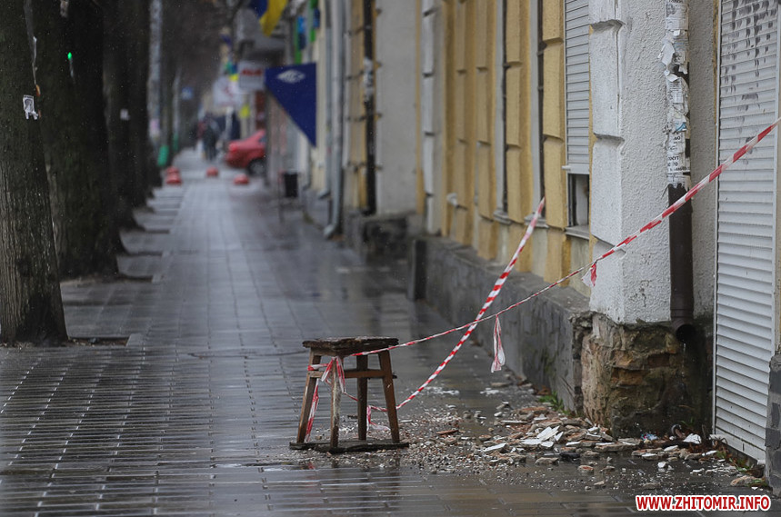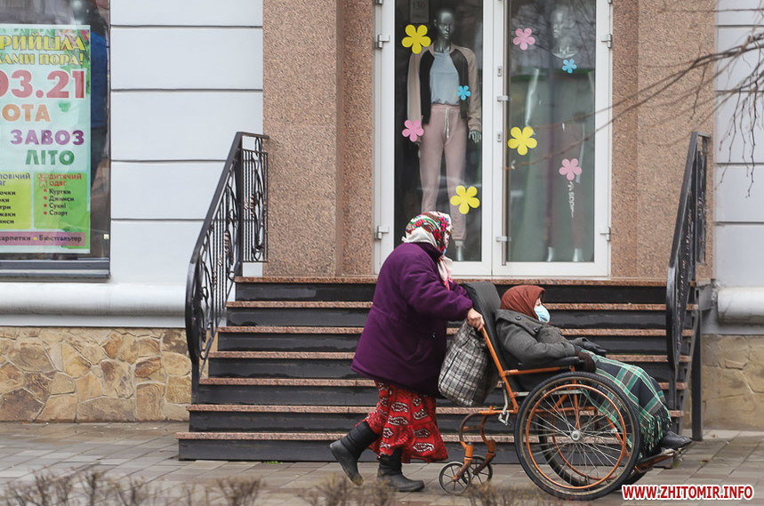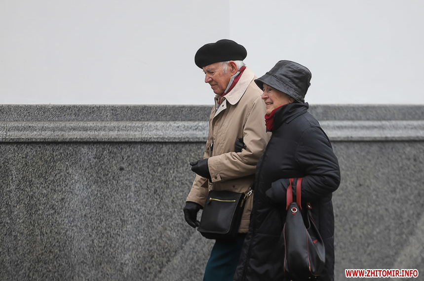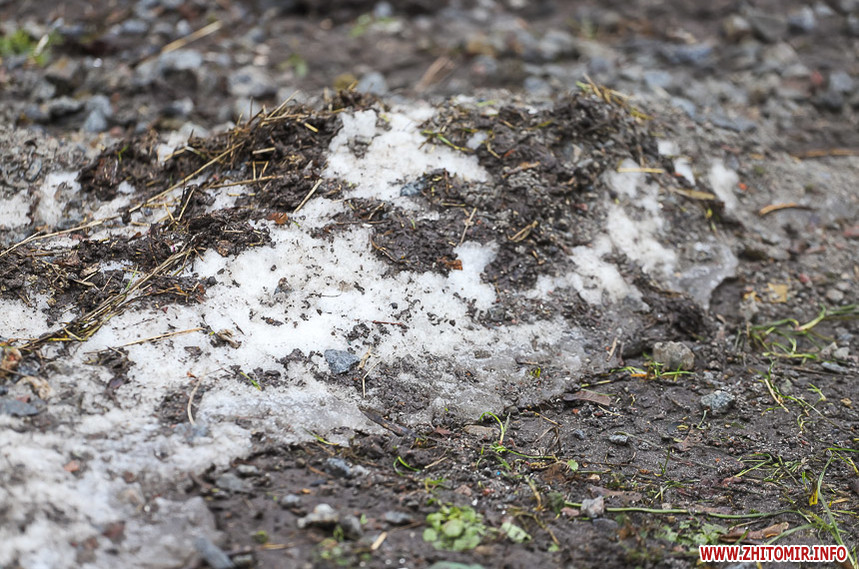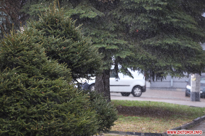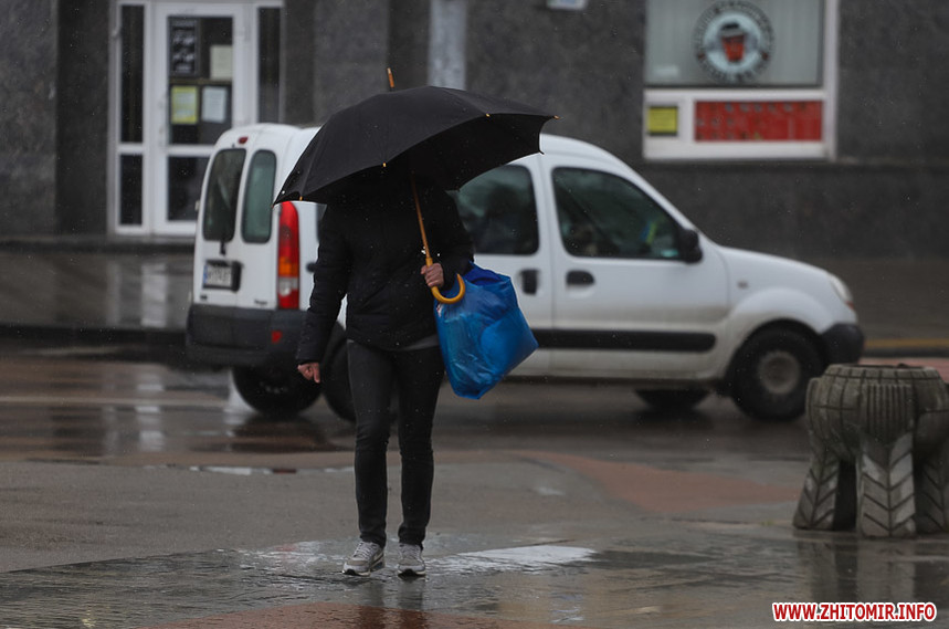 Вдень 7 квітня житомиряни знову дістали з шаф теплі речі - більшість людей на вулицях у зимових пуховиках чи куртках. Майже всі житомиряни - у головних уборах чи капюшонах, багато хто одягнув рукавички та ховається під парасолькою.