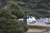 На клумбах у місті де-не-де ще лишилися залишки зимових снігопадів - брудний сніг з льодом.