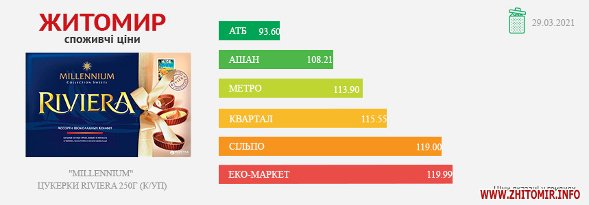 Моніторинг здійснено на основі інформації, отриманої за методом контрольної закупки 21.11.2025 р. у місцях продажу: АТБ, пр. Миру, 15а, Фора, вул. Київська, 106, Метро, вул. Ватутіна, 55в, Сільпо, вул. Житній ринок, 1