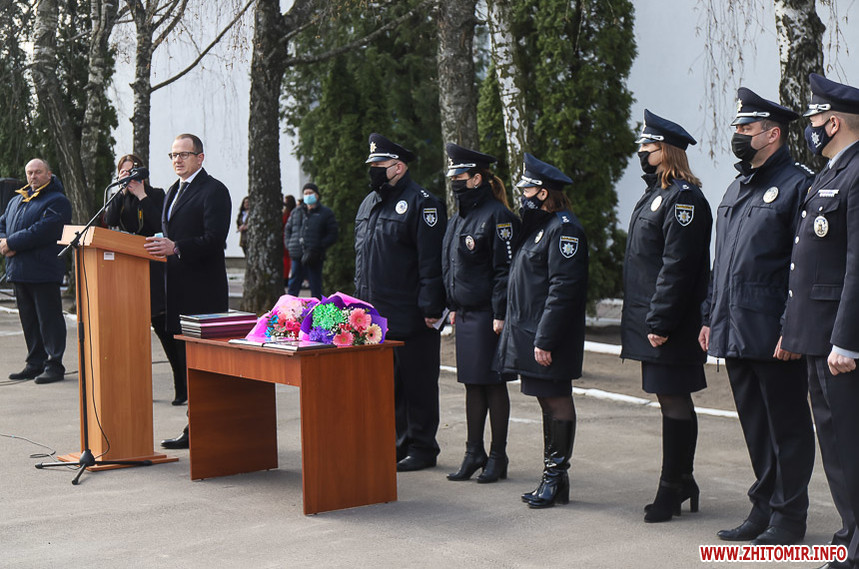 У Державній установі «Житомирський навчальний центр підготовки поліцейських» 9 квітня відбулися урочисті заходи з нагоди випуску поліцейських, яких вперше прийнято на службу до поліції.
