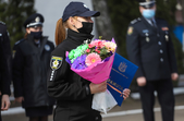 «У нас це перший випуск: 4 групи, 119 слухачів, з них 40 - дівчат (34%), 2 підрозділи превентивної діяльності (дільничі), група кінологів і група патрульних. Навчальних дисциплін дуже багато, всі обв’язково вивчають кримінальне право, адміністративне право, правила дорожнього руху, закон України про національну поліцію і дуже багато предметів, у деяких їх і по 45 і більше. Період пандемії це не дуже гарний час для навчання. Ми знаємо, що в нас в області введено стан карантину, але все ж таки ми організували навчання з дистанційними технологіями і ту програму, яку повинні опанувати слухачі, вони її зробили, все що було заплановано, то все ми виконали. З цього випуску у нас 4 відмінники, це ті, що закінчили з відзнакою. Середня статистика показує достатній рівень знань», – розповіла перший заступник начальника ДУ «Житомирський навчальний центр підготовки поліцейських» поліції Наталія Чабанюк.