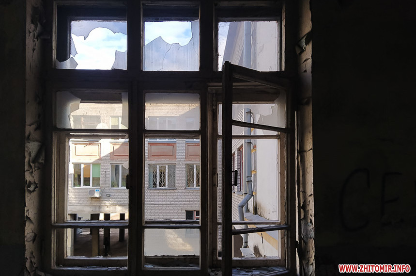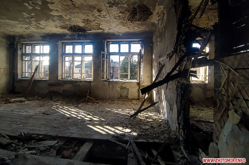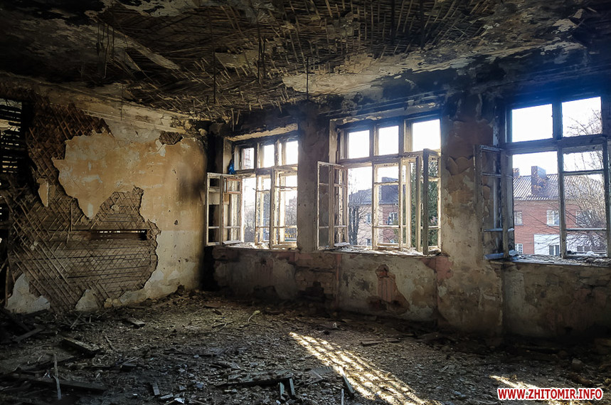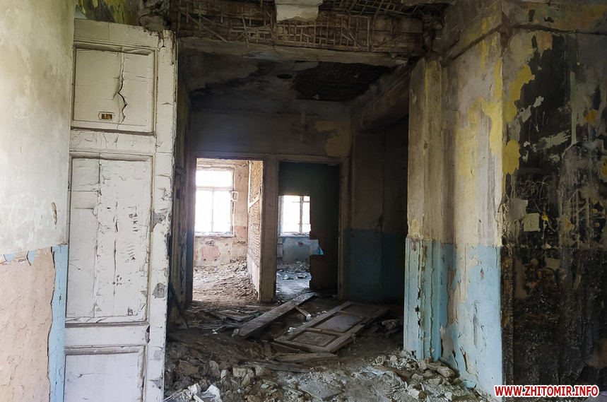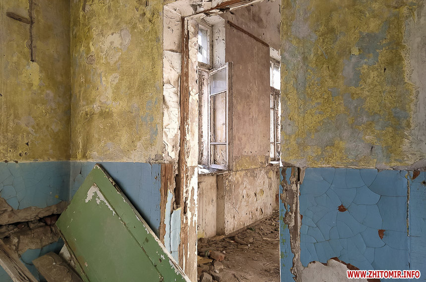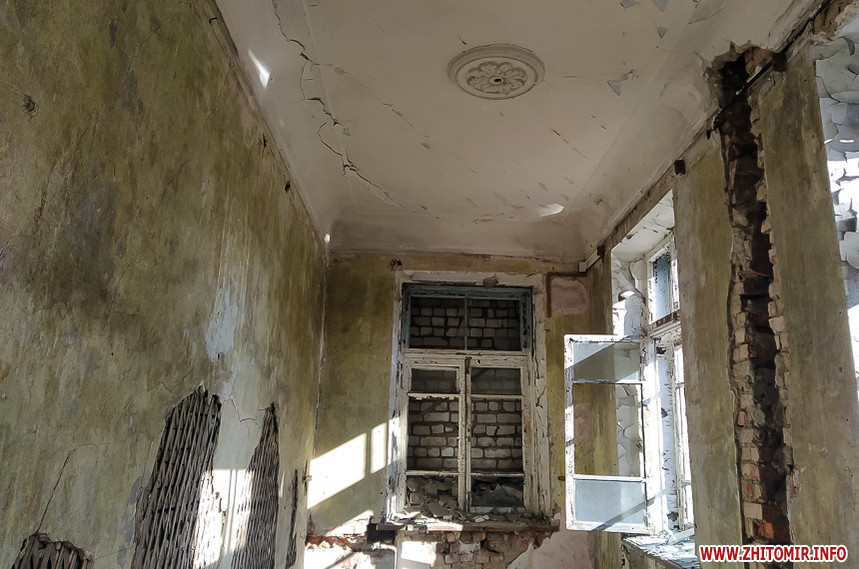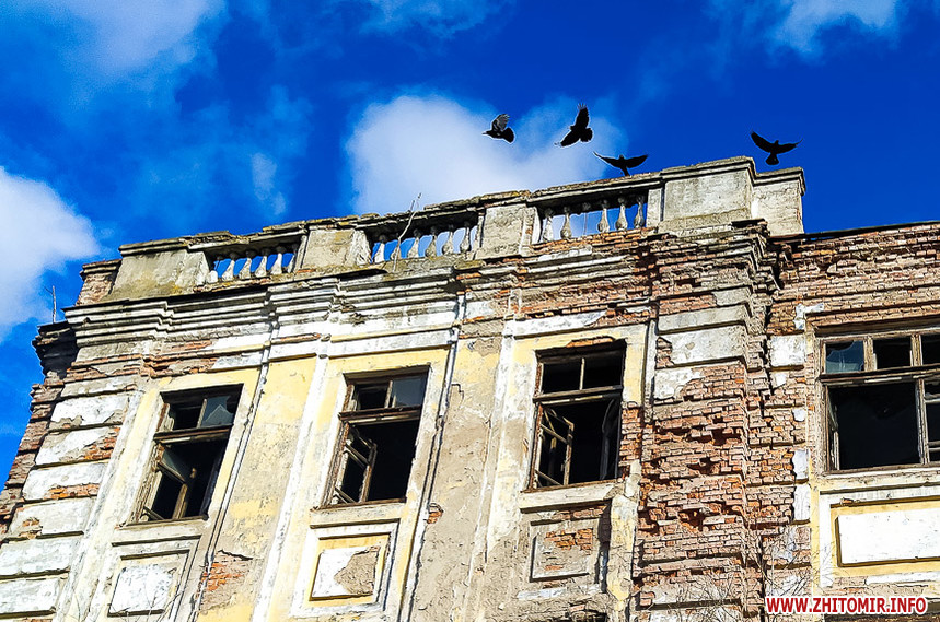 Біля Житомирського міського колегіуму на вулиці Івана Мазепи,18 знаходиться напівзруйнована старовинна будівля, огороджена зеленим парканом з попереджувальними написами та величезними дірками.