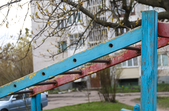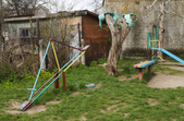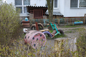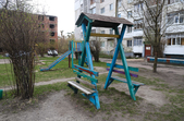 Мешканці деяких будинків вирішили, що навіть старі дерев’яні майданчики кращі, ніж їх повна відсутність і тому з усіх сил підтримують їх у належному стані: встановлюють огорожі, фарбують і ремонтують.