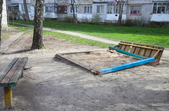 Нових майданчиків тут мало. Більшість - старі, дерев’яні. У деяких дворах вони вже на стільки зруйновані, що можуть бути небезпечними. Місцеві жителі розповідають, що самовільно прибрати старий десятирічний майданчик вони не мають права.