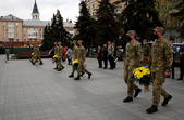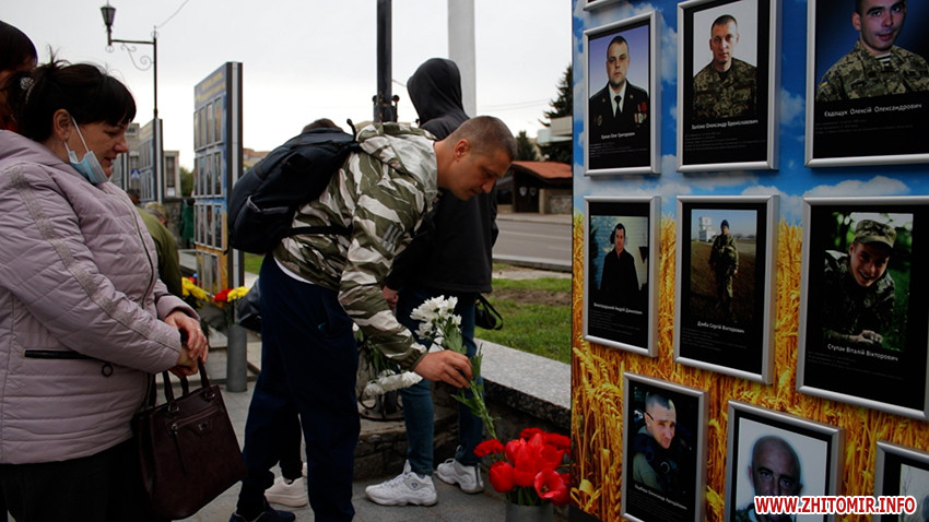 Далі житомиряни поклали квіти до меморіальних стендів загиблих воїнів АТО/ООС на майдані Соборному.