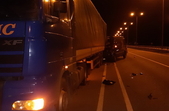 «О 00:25 год. під час несення служби інспектори зупинили транспортний засіб DAF з напівпричепом, яким керував житель Полтавщини, 1981 року народження. Причиною зупинки була технічна несправність зовнішніх світлових приладів вантажівки. Після усунення недоліків водій збирався продовжити рух, проте у певний момент, ще до початку руху, ззаду у напівпричіп в’їхав Mercedes-Benz Sprinter під керуванням киянина, 1961 року народження», – розповіла пресофіцер патрульної поліції Тетяна Носадчук.