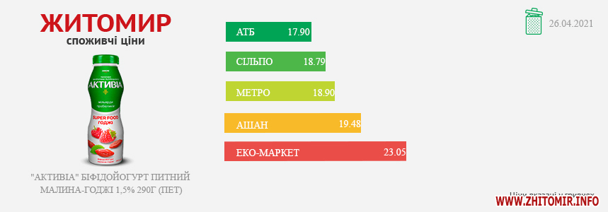 Моніторинг здійснено на основі інформації, отриманої за методом контрольної закупки 21.11.2025 р. у місцях продажу: АТБ, пр. Миру, 15а, Фора, вул. Київська, 106, Метро, вул. Ватутіна, 55в, Сільпо, вул. Житній ринок, 1