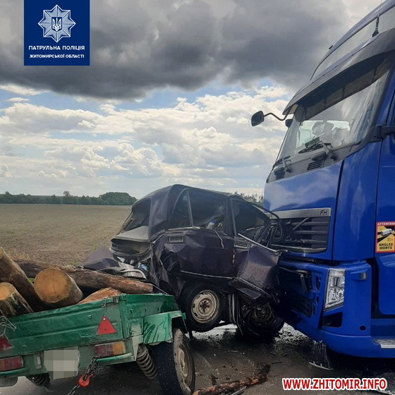 На трасі Київ — Ковель — Ягодин у Житомирській області вдень 24 травня зіткнулися автомобілі ВАЗ та Volvo. Водій легковика загинув.
