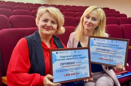 - Житомирська міська рада - сертифікат на суму 4 мільйони 300 тисяч гривень для обладнання сучасними електронними ресурсами 15 кабінетів початкової освіти НУШ, 15 кабінетів математики, 15 кабінетів для інклюзивного навчання, 15 закладів дошкільної освіти.