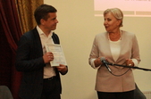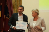 Засновниця ГО «Центр освітніх реформ «Наші діти» та координатор проекту АМУ «Інноваційний прорив» Лариса Почечун розповіли про проект та вручили сертифікати переможцям:
