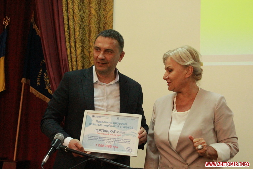 - Баранівська міська рада - сертифікат на суму 1 мільйон гривень для обладнання сучасними електронними ресурсами 8 кабінетів початкової освіти НУШ та 4 кабінетів математики.