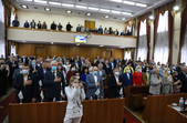 Розпочалось засідання сесії з традиційного нагородження, далі присутні слухали звіт голови ОДА Віталія Бунечка про виконання програми економічного і соціального розвитку Житомирської області.