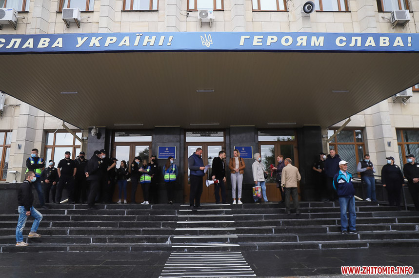 Поки тривала сесія, під стінами обласної ради мітингували люди.