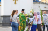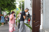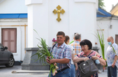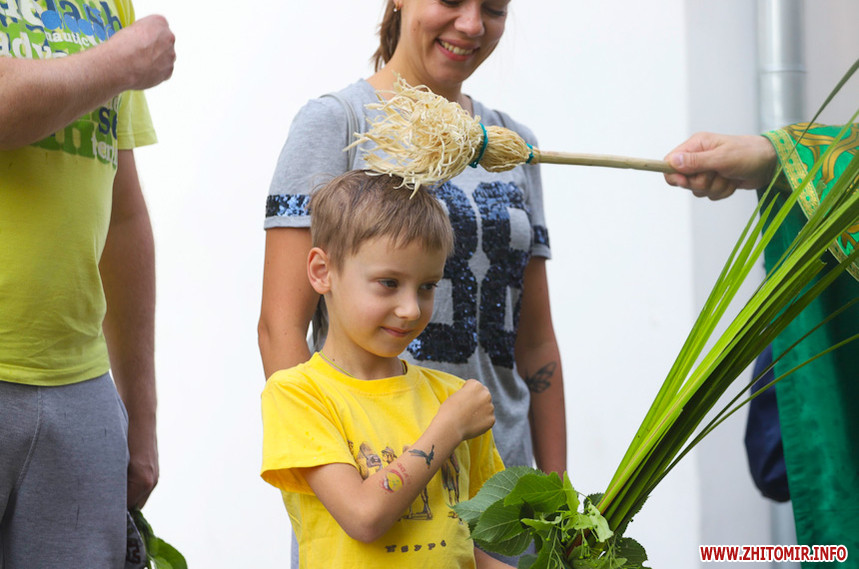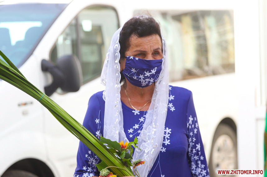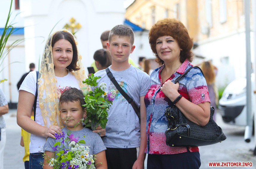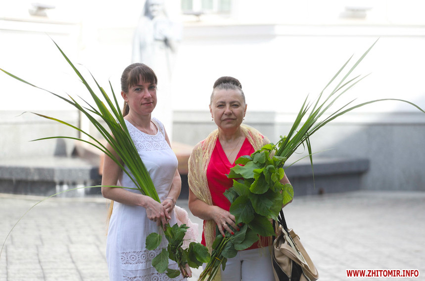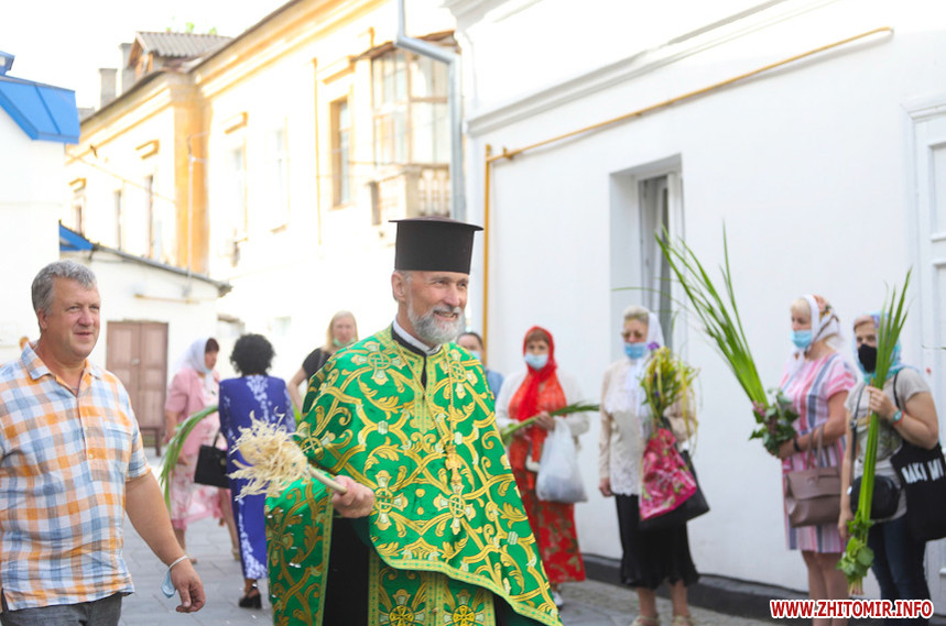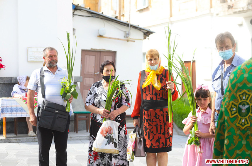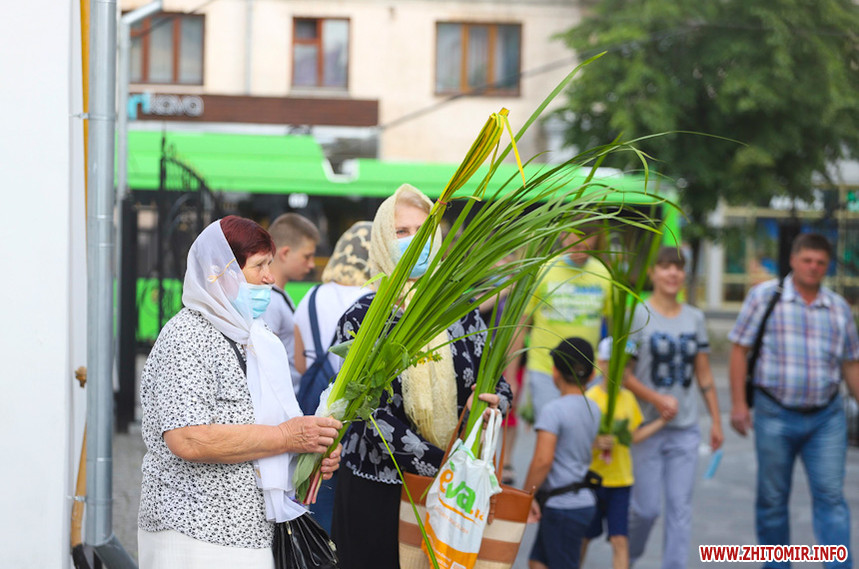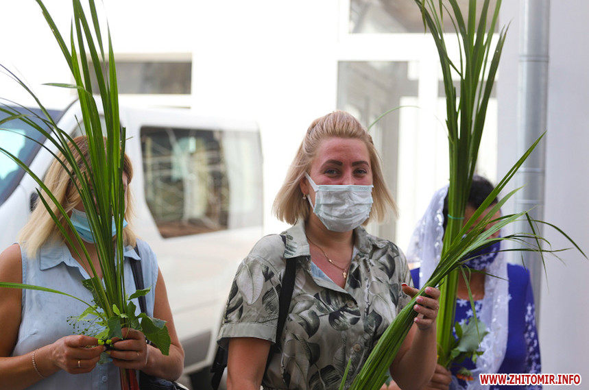 З 8.30 біля Свято-Михайлівського собору збираються десятки житомирян, які освячують свої букети. Як тільки збирається 10-15 людей – священник освячує букети. Служба в соборі має завершитися близько 11.00, саме тоді очікують більше людей.