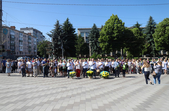 Після покладання квітів люди урочистою ходою рушили центральними вулицями міста, зупиняючись біля пам’ятників видатних державних діячів, а також пам’ятного знаку Героям Небесної Сотні і меморіальних стендів загиблих та померлих воїнів АТО/ООС.