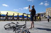 Ті, хто сьогодні на роботі і не зміг долучитися до ходи, вітали колону прямо зі своїх робочих місць, знімаючи ходу на мобільні телефони. Дехто, уздрівши ходу, приєднувався.