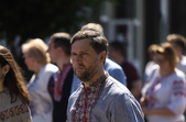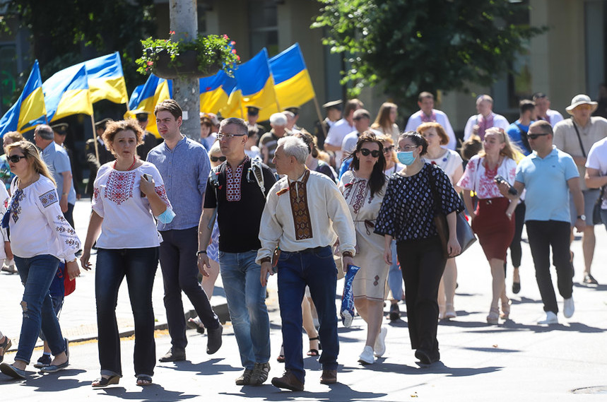 Багато хто прийшов у вишиванках, дехто - з прапорами та квітами. Також можна побачити людей у масках.
