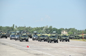 «Понад тисячу військовослужбовців та майже 300 одиниць техніки зібрали на військовому аеродромі «Півці», що біля Чернігова, тренуватися для участі у параді з нагоди 30-ї річниці Дня Незалежності України. Тренування на Чернігівщині буде тривати до 7 серпня. Далі колона переміститься до Києва, де продовжить відточувати дії уже під час генеральних репетицій на злітній смузі Антонова та безпосередньо на Хрещатику», - йдеться у повідомленні.
