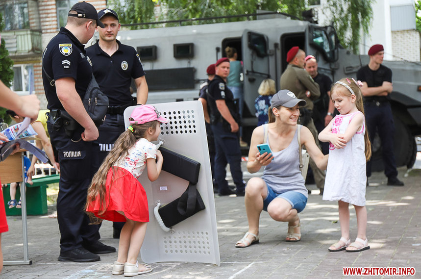 2 липня поблизу адміністративної будівлі Житомирського районного управління поліції правоохоронці влаштували дитяче свято, приурочене шостої річниці з Дня створення Національної поліції України. Тут для юних житомирян та гостей міста облаштували безпекове містечко.
