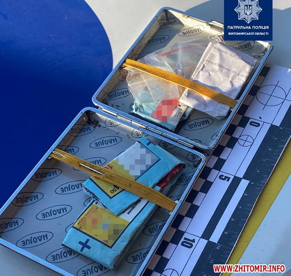Надалі патрульні здійснили поверхневу перевірку громадянина та виявили 4 згортки з речовинами, ймовірно, наркотичного походження.