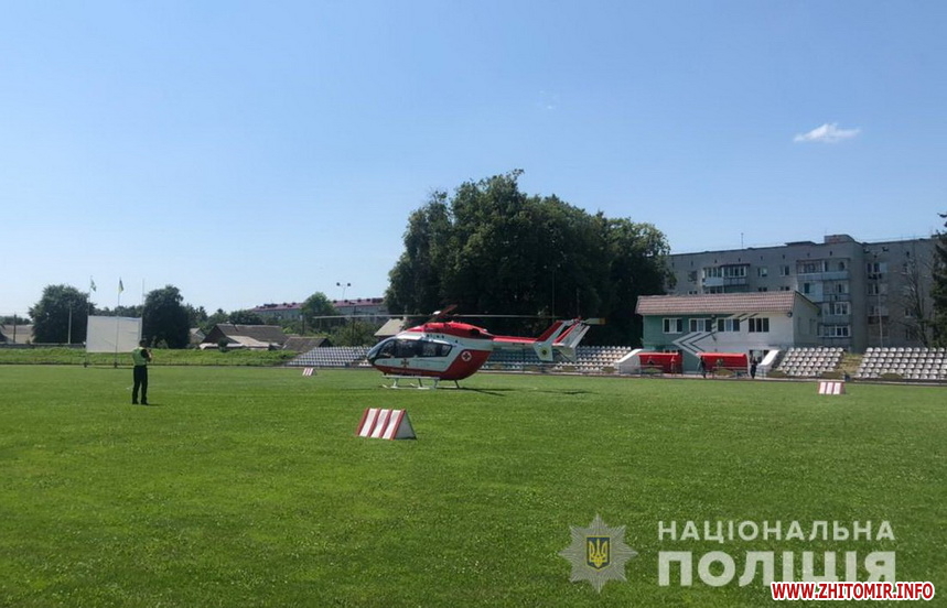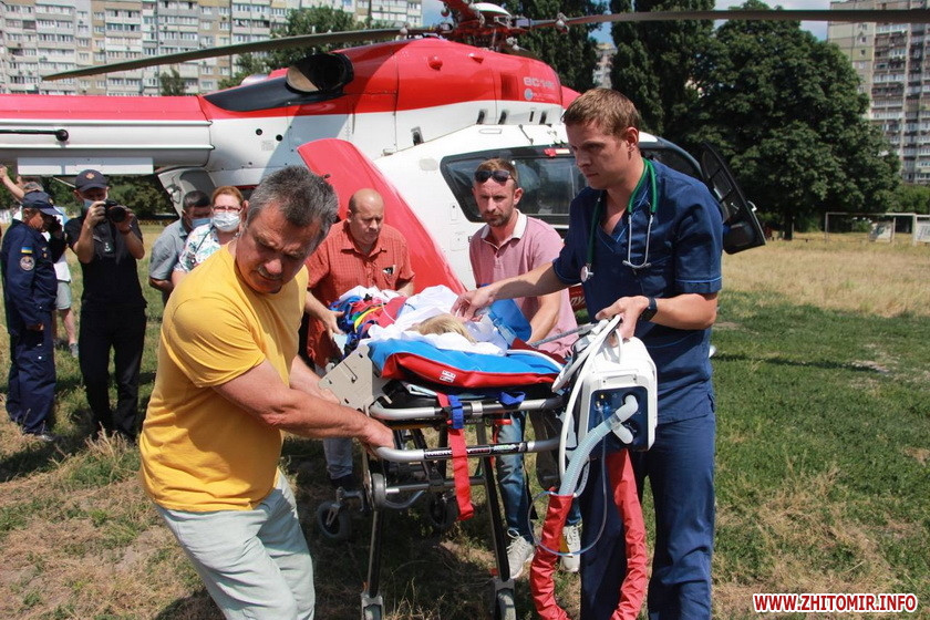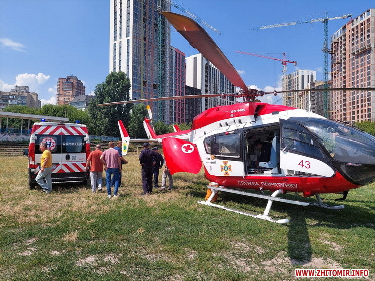 «Близько 12:30 у м. Новограді-Волинському медичний реанімобіль екстреної медичної допомоги доставив пораненого 9-річного хлопчика на стадіон «Авангард», де приземлився гелікоптер спеціального авіаційного загону ДСНС України. Екіпаж рятувальників сьогодні як раз брав участь у тактико-спеціальних навчаннях на Рівненщині, тому максимально швидко прибув у Житомирський регіон. Дитину та двох лікарів-анестезіологів для супроводу перемістили на борт гвинтокрилу. Вже за кілька годин хлопчик буде під опікою медиків Національної дитячої спеціалізованої лікарні МОЗ України «Охматдит», - йдеться у повідомленні.