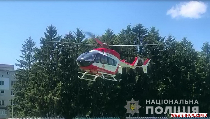 Вдень 13 липня за допомогою гелікоптера Системи авіаційної безпеки МВС9-річного жителя м. Новограда-Волинського з тяжким вогнепальним пораненням транспортували до столиці, в Національну дитячу спеціалізовану лікарню МОЗ України «Охматдит».