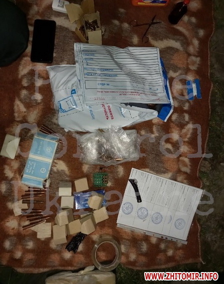 - предмет циліндричної форми, ззовні схожий на УЗД1М та 4 предмети, схожі на підривачі;