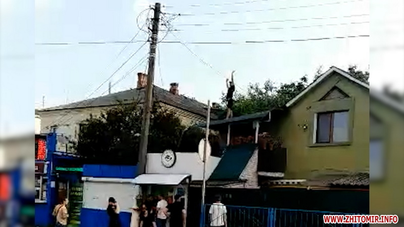 Як повідомляв Житомир.info, 6 жовтня 2020 року на зупинці громадського транспорту по проспекту Миру в Житомирі неадекватний чоловік заліз на електроопору, а потім зістрибнув на автомобіль рятувальників, що прибули на виклик.