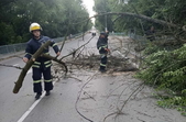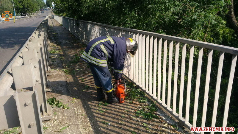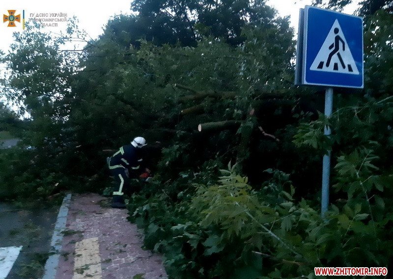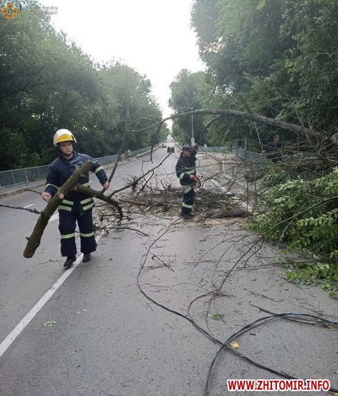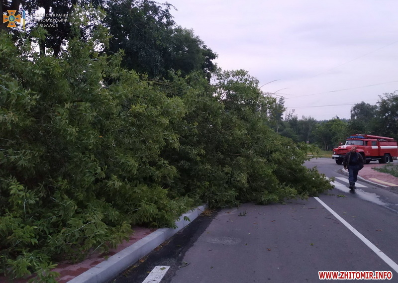 "Упродовж минулої доби областю пронеслася негода. Сильні пориви вітру повалили дерева. Зокрема, у м. Коростишів дерева попадали на проїжджу частину, частково перекривши рух автотранспорту. У смт Червоне Бердичівського району аварійне дерево перекрило ще один автошлях. В м. Радомишль гілля та стовбури спричинили перепони для людей поблизу мосту. Рятувальники порізали бензопилами усі утворені перешкоди та прибрали залишені рештки на узбіччя. Постраждалих внаслідок негоди немає", - повідомили в ДСНС.